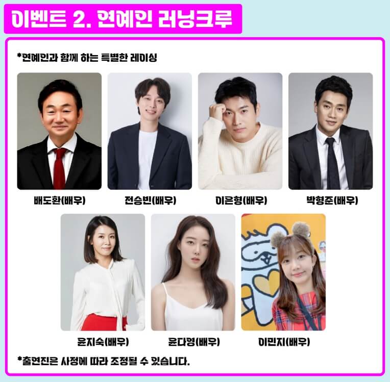 - 주최 측은 참가자에게 보다 나은 서비스를 제공하기 위한 목적으로 협력사(기록증 제작사, 택배사 등)에게 최소한의 범위 내에서 참가자 정보를 제공할 수 있습니다.